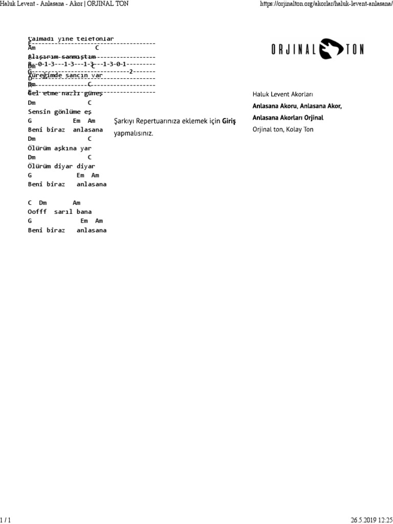 Koray Avci Neriman Akor Ver 2 Kolay Orjinal Ton Gitar Akorlari