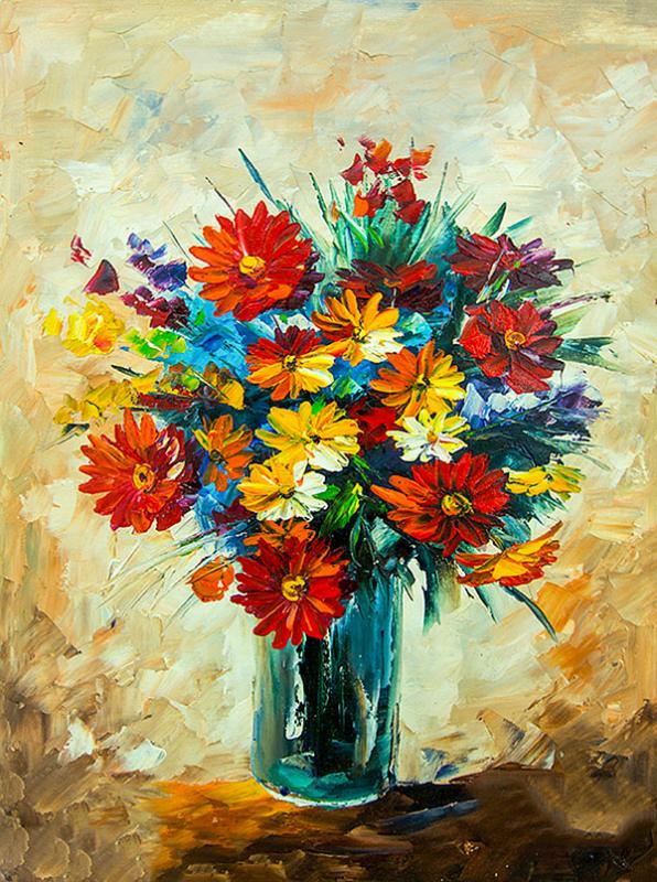 Renkli Cicek Buketi Tablosu Yagliboya Cicek Tablosu Cicek Tablolari
