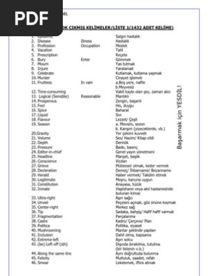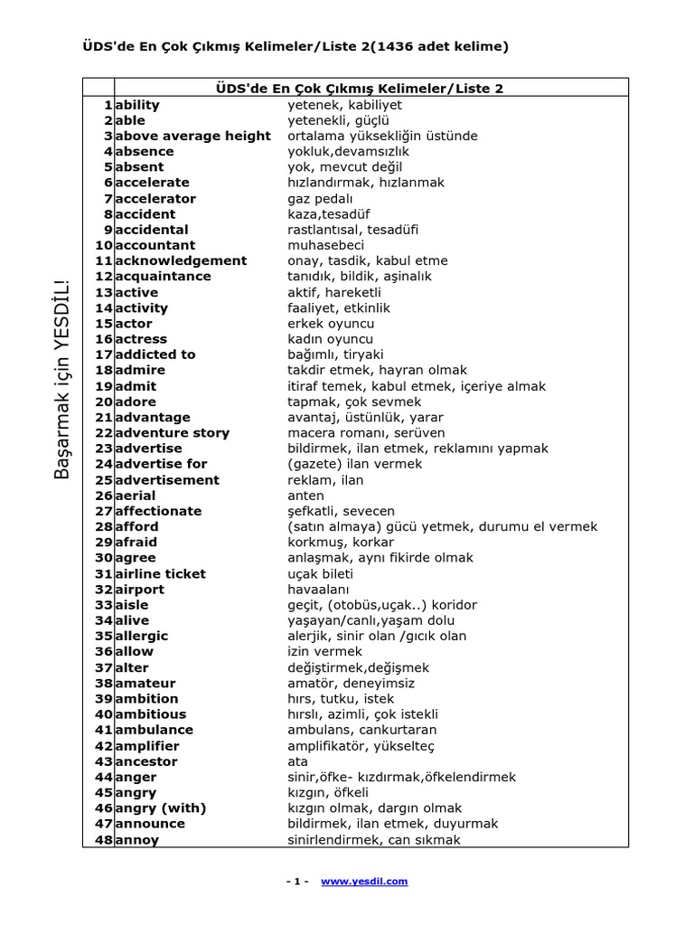 Ds De En Ok Km Kelimeler Liste 2 1436 Adet Kelime