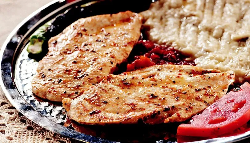 Begendili Tavuk Kulbasti Taze Baharatlarla Marine Edilmis Tavuk Yaninda Patlican Begendi Izgara Domates Ve Biber Ile Yemek Tarifleri Yemek Yiyecek Ve Icecek